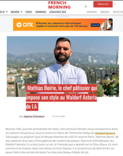 Mathias Boirie, le chef pâtissier qui impose son style au Waldorf Astoria de LA
